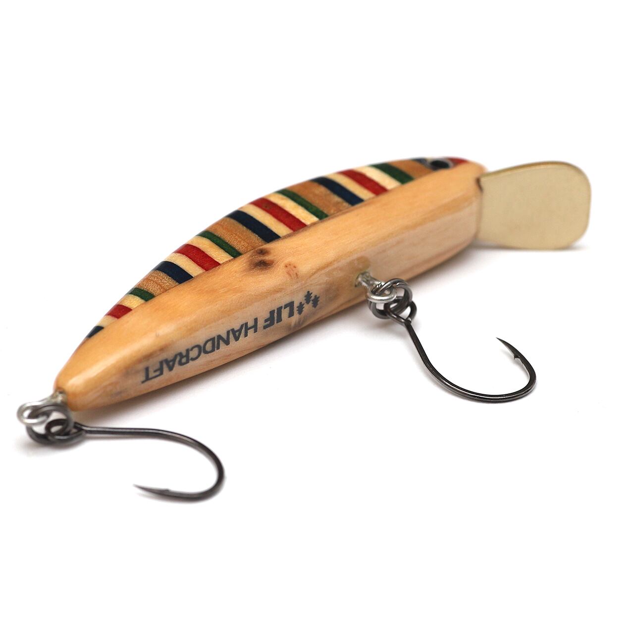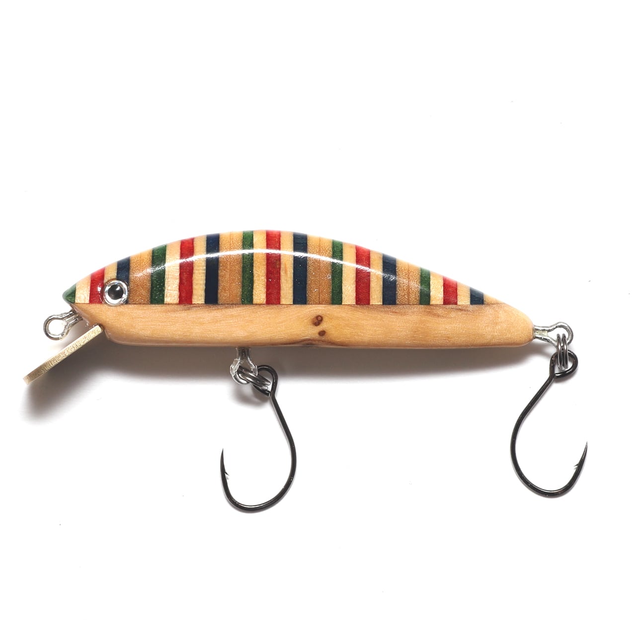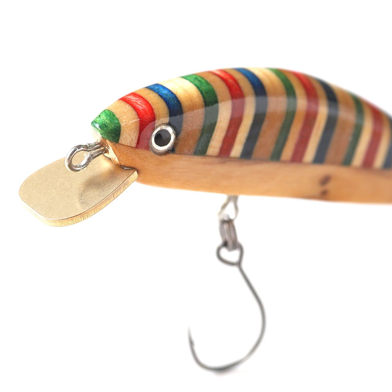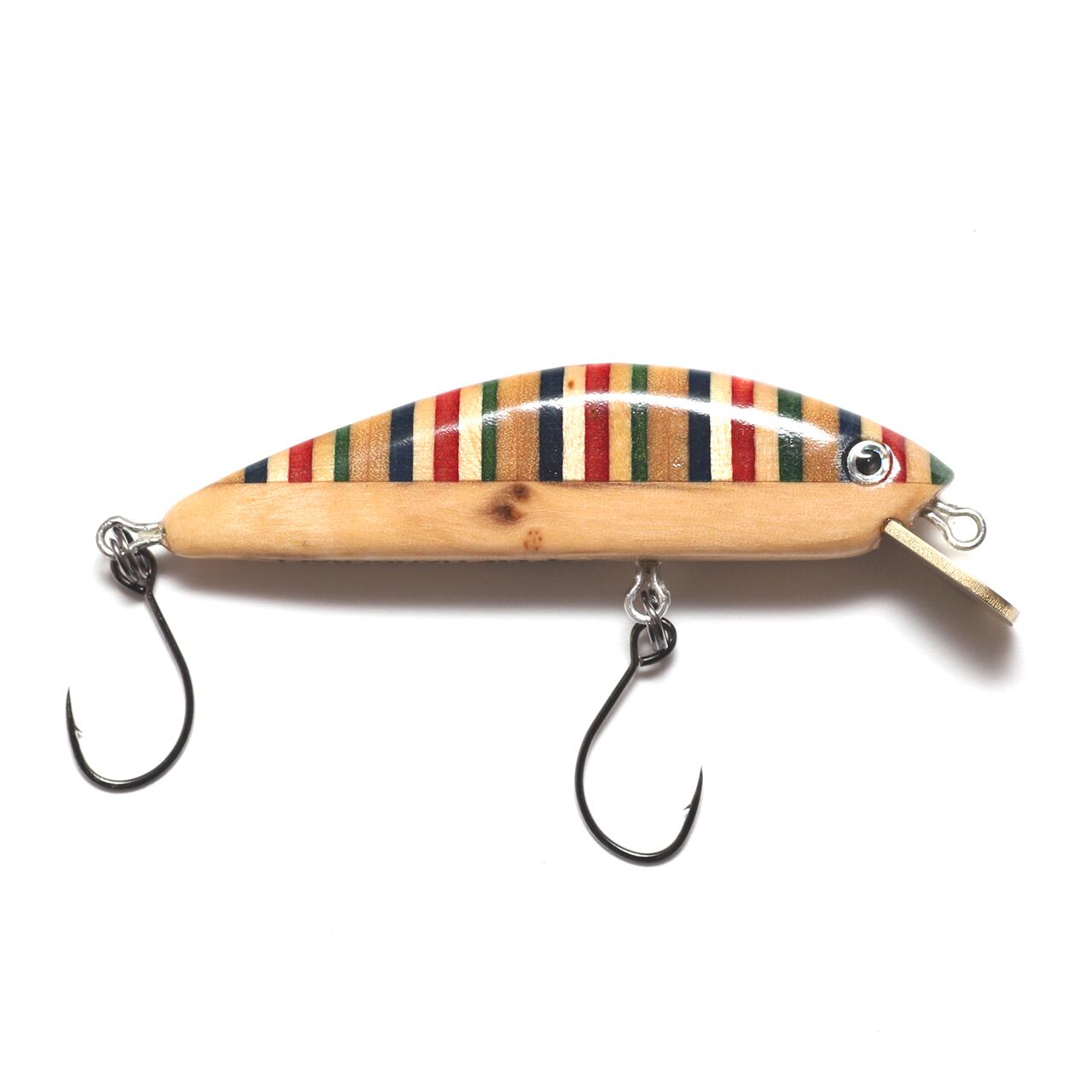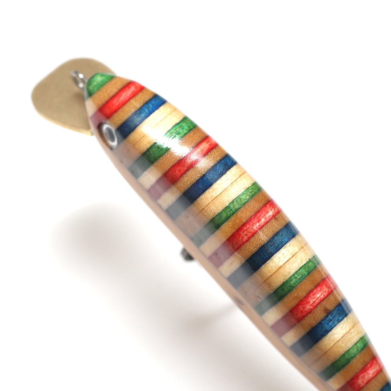 スケートボードのプライの色合いを活かした縞々模様と、ベリー部分にオリーブウッドを組み合わせ、5PLY 54Sと同じシェイプに仕上げた54mmのミノーです。