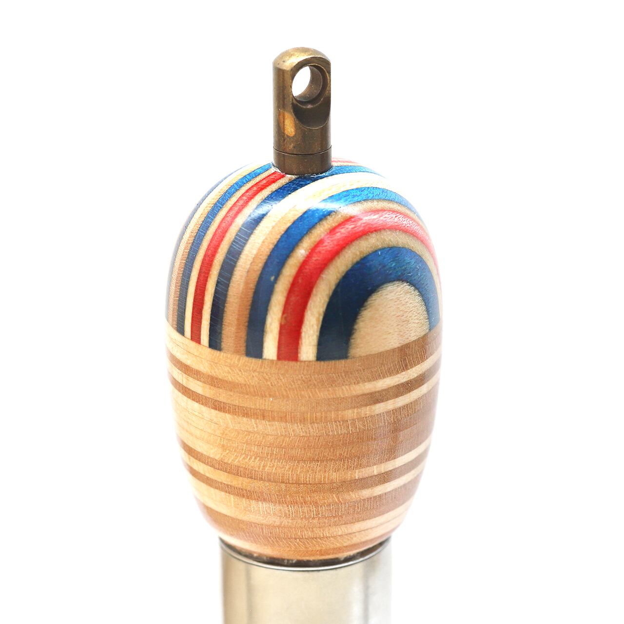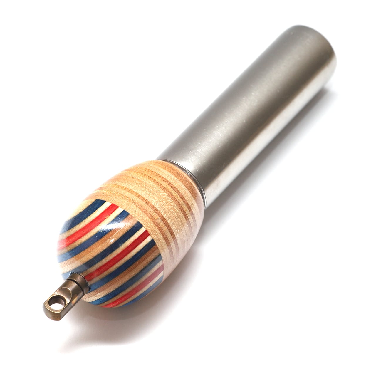 グリップ部分は、使い終わったスケートボードのデッキ(板)を寄木して作っています。