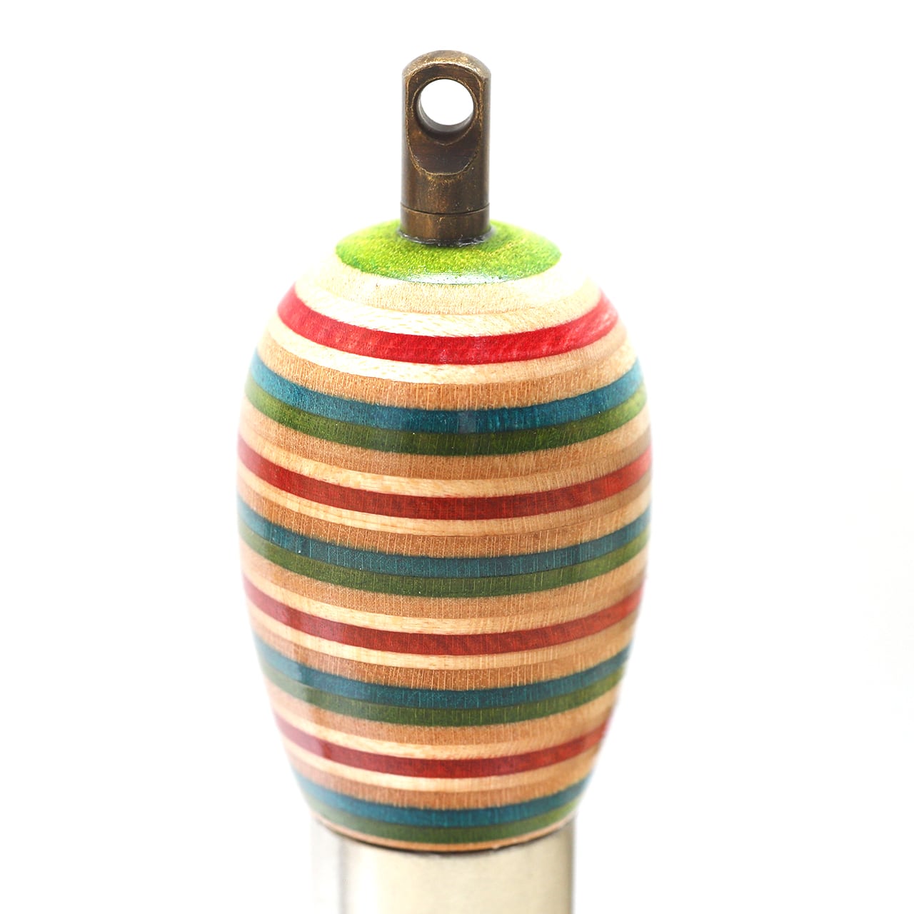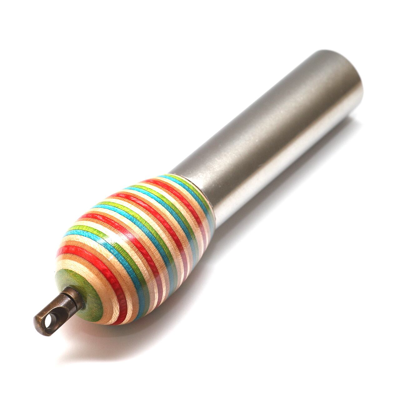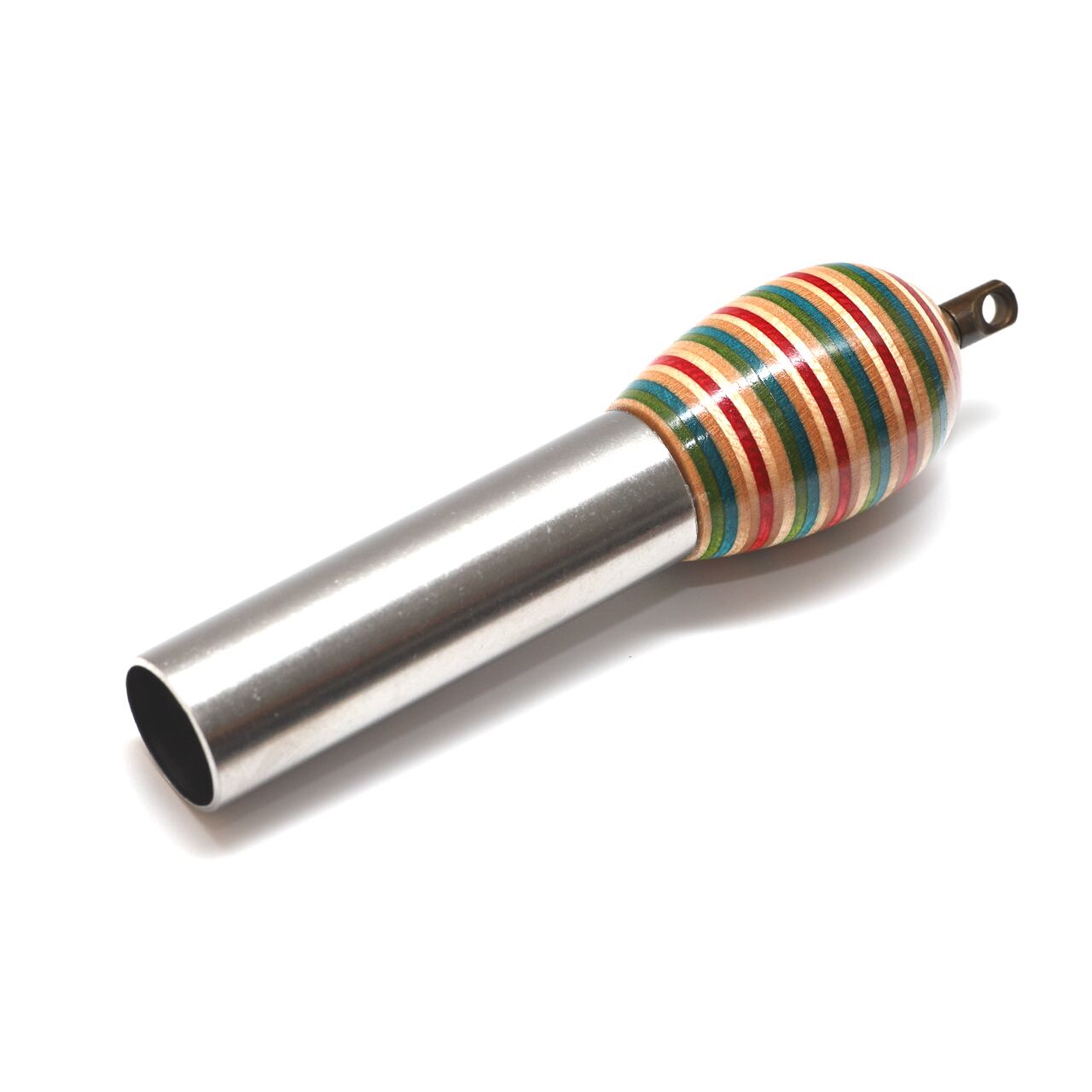 グリップ部分は、使い終わったスケートボードのデッキ(板)を寄木して作っています。
