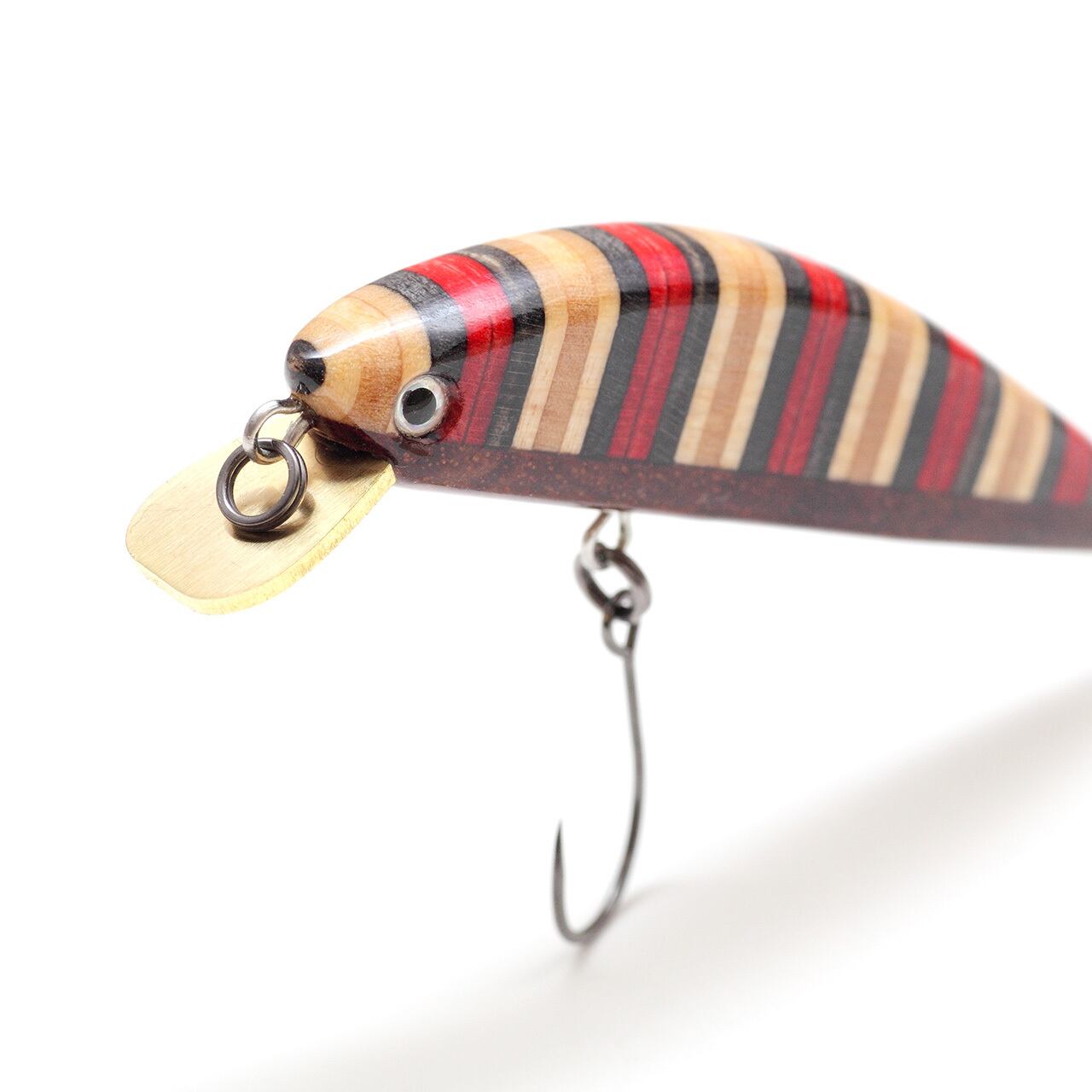 スケートボードのプライの色合いを活かした縞々模様と、ベリー部分に花梨を組み合わせ、5PLY 54Sと同じシェイプに仕上げた54mmのミノーです。